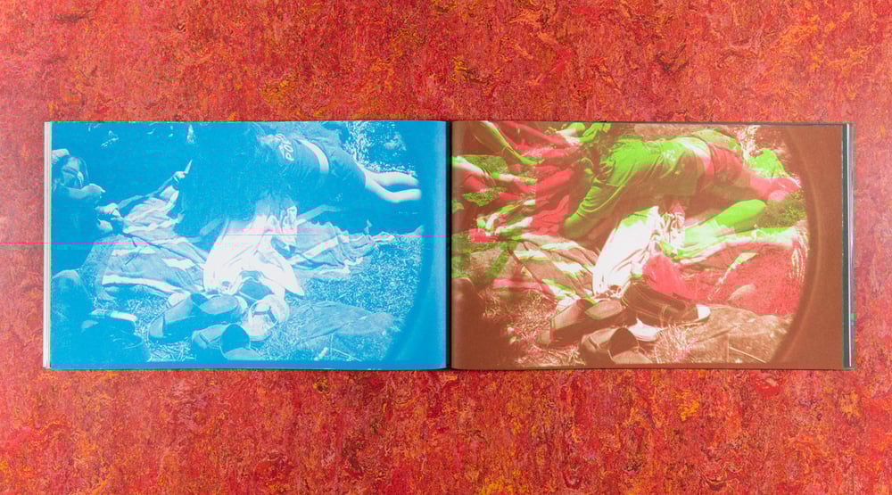 …is a book made from stills from Nova Paul’s 16mm film This is not Dying (2010). Two pieces of writing are included, Karl Steven’s liner notes on musician Ben Tawhiti and Gwynneth Porter and Nova Paul’s essay The Virtues of Trees that like a tree grew from conversations over a year, spanning into ideas of sovereignty, resistance, film analysis, genealogy and care of self and the world around us. RGB print processes were used in its design to echo the RGB optical process of three-colour-separation film itself. Whakarongo Mai, played by Ben Tawhiti on slide and steel guitar for This is not Dying, is reconfigured here on 7″ LP.